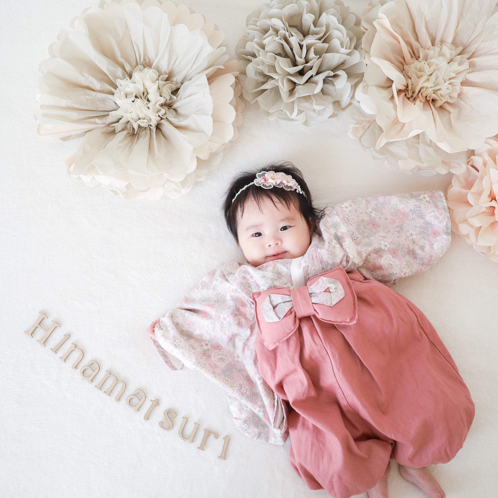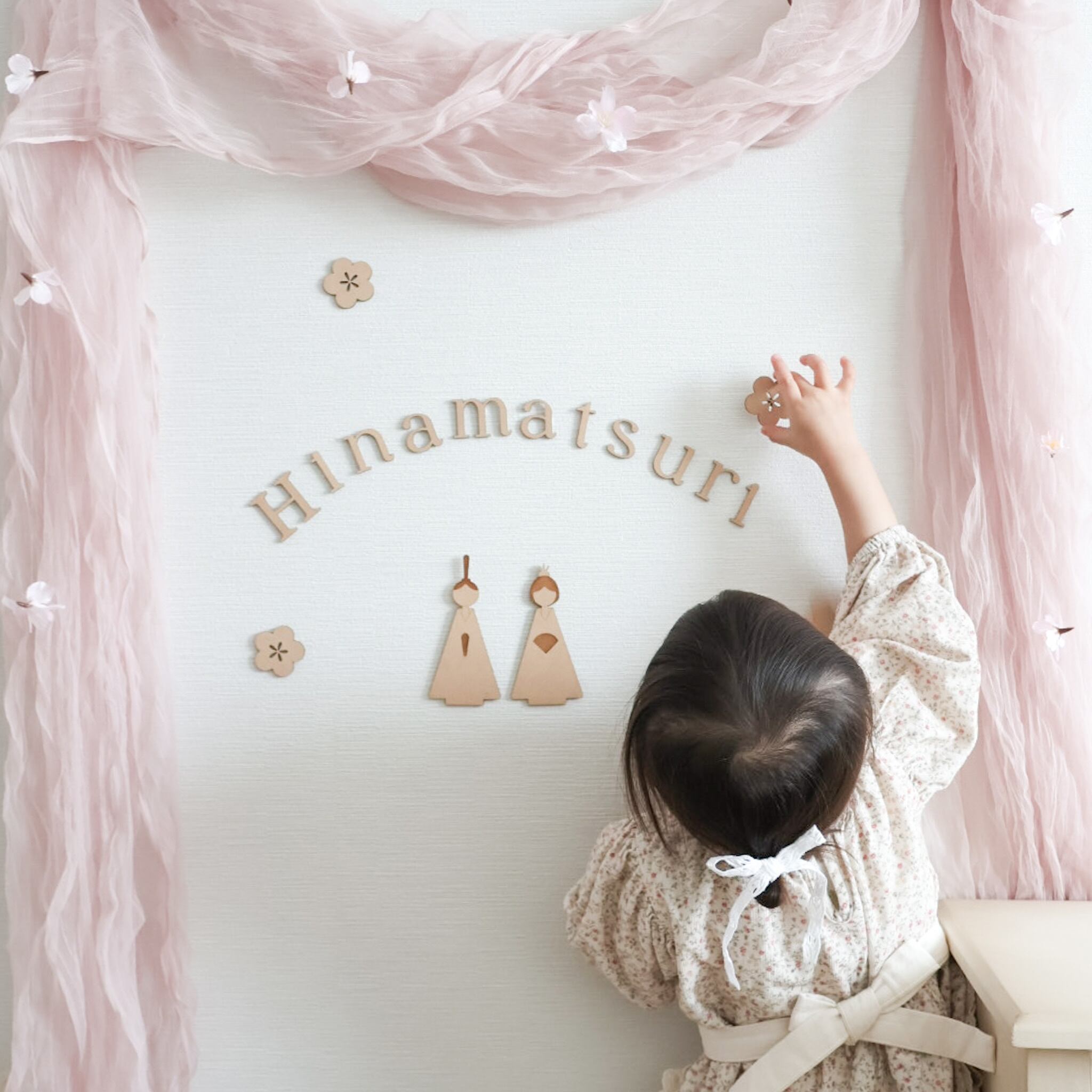 壁に貼り付けてお子さまや雛人形と一緒に撮影したりと